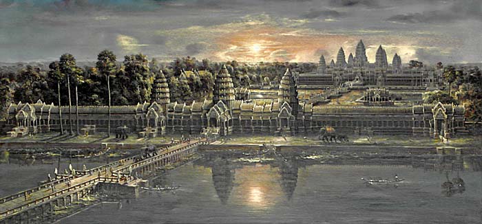 Ngược dòng thời gian, Indravarman Vĩ đại, với mong muốn mở rộng vương quốc của mình mà không cần chiến tranh và bắt đầu cho xây những công trình lớn nhờ của cải có được thông qua mậu dịch và nông nghiệp. Sau khi ông mất, con trai ông, Yasovarman I đã tiếp tục cho xây rất nhiều công trình quan trọng và ông ra lệnh cho thiết kế và tiến hành xây dựng Angkor Wat, khi người Khmer đang trong giai đoạn đỉnh cao về tôn giáo, quân sự,.. Người chịu trách nhiệm xây dựng đền Angkor Wat chính là vua Suryavarman II (trị vì từ năm 1113 đến năm 1150). Công trình này ban đầu để thờ thần Vishnu, một vị thần theo tín ngưỡng Ấn Độ Giáo. Thời kì thờ thần Vishnu của Đền Angkor Wat đến nay vẫn là một bí ẩn chưa có lời giải đáp như thời gian ngôi đền được hoàn thiện, tên của ngôi đền trước đây….