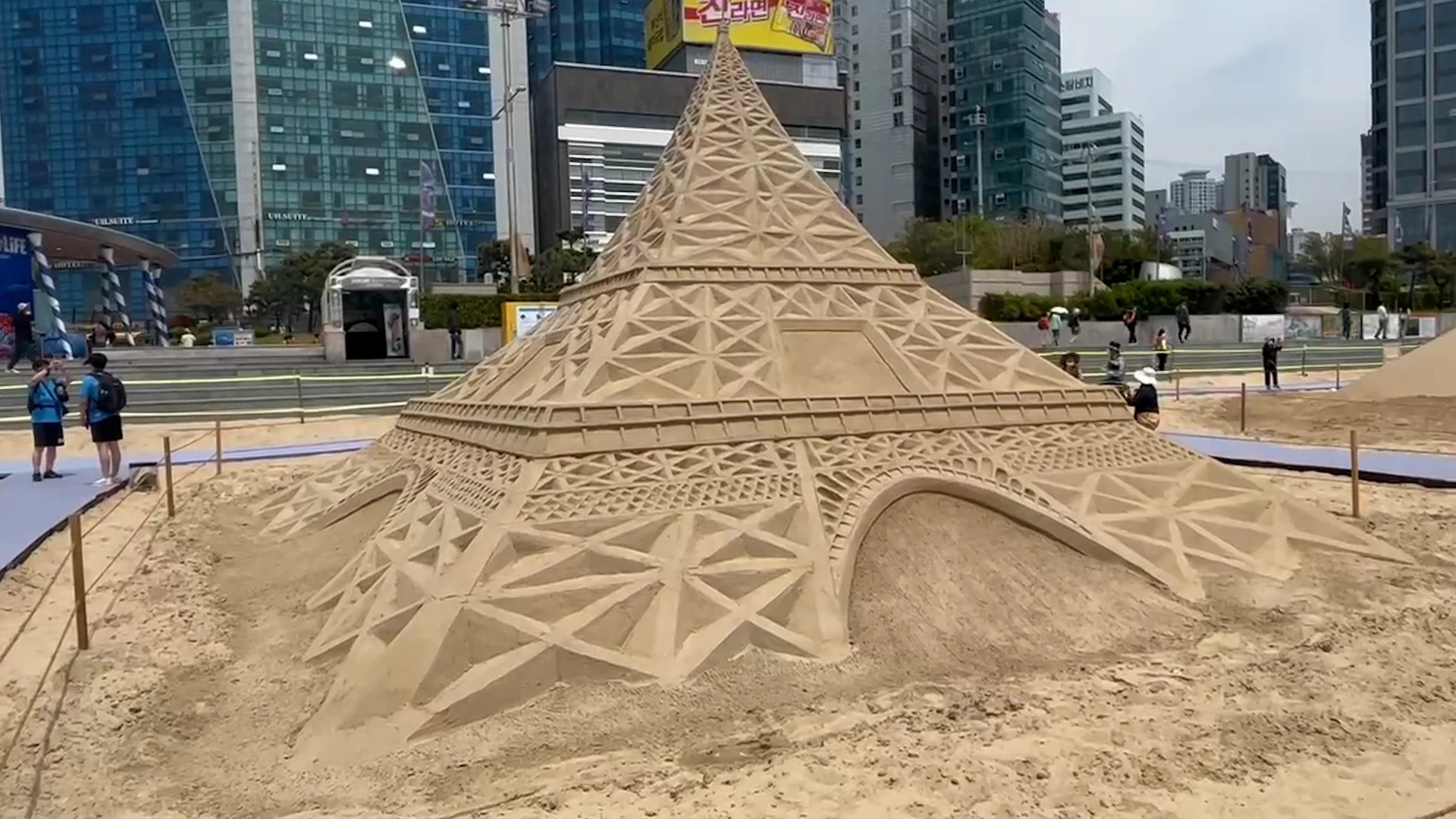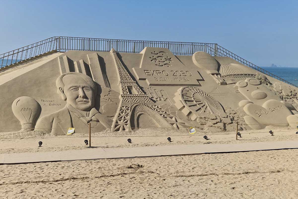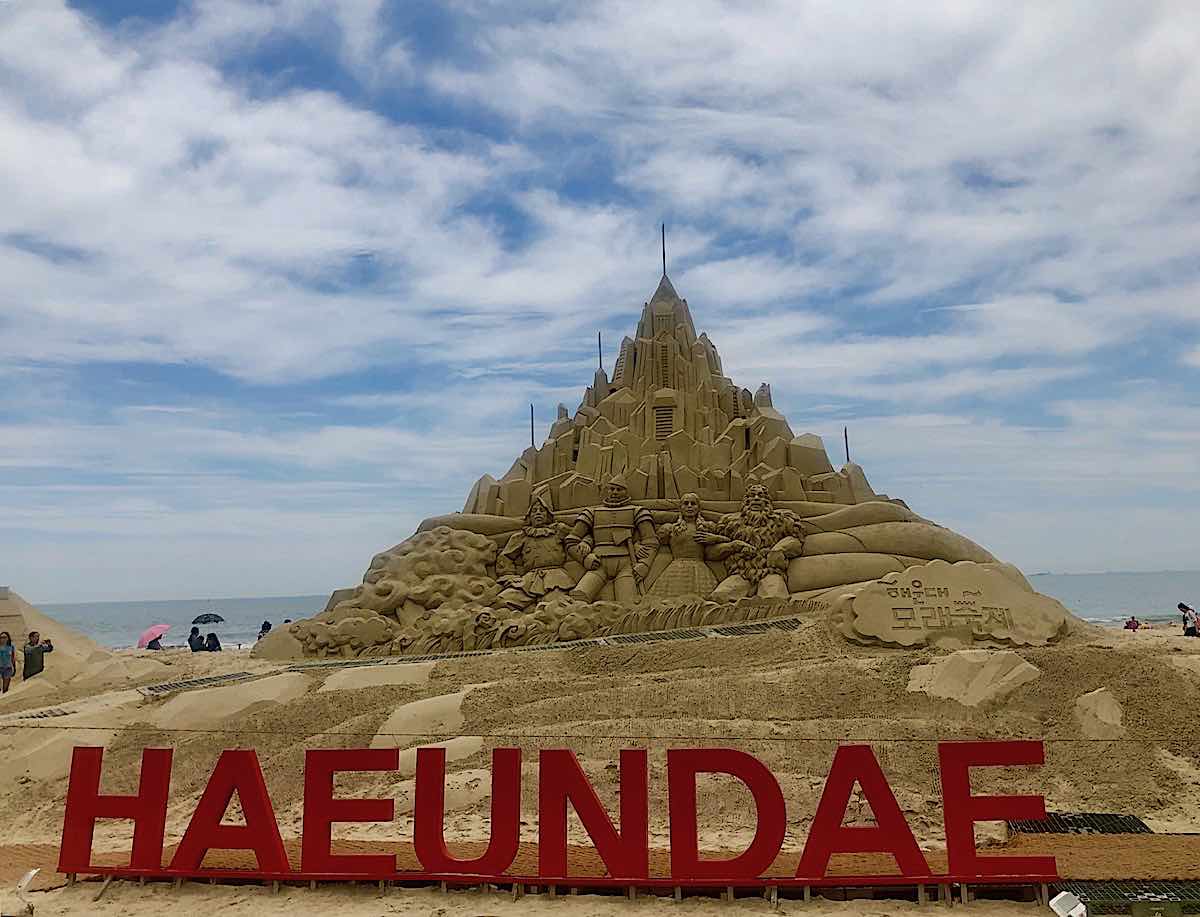 Nằm trên bãi biển Haeundae mang tính biểu tượng, tác phẩm điêu khắc cát được thực hiện ở vị trí trung tâm. Ra khỏi tàu điện ngầm, đi bộ xuống con phố rộng lớn và đi thẳng đến bãi biển. Tại đây, bạn có thể tìm thấy Haeundae Event Plaza, một lối đi bằng gỗ lớn, nơi bạn có thể dễ dàng gặp gỡ mọi người. Bên trái, bạn sẽ tìm thấy một số nhà vệ sinh công cộng và bên phải là Thủy cung Busan SeaLife mang tính biểu tượng.