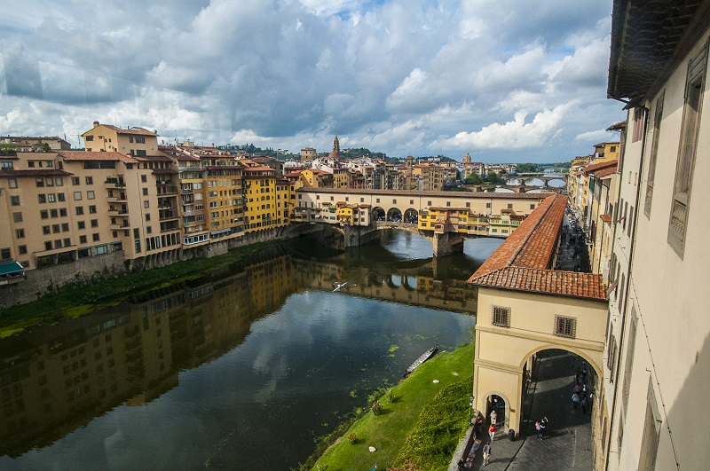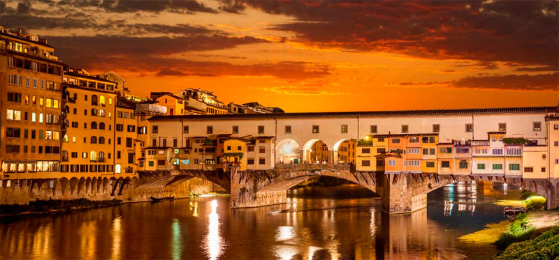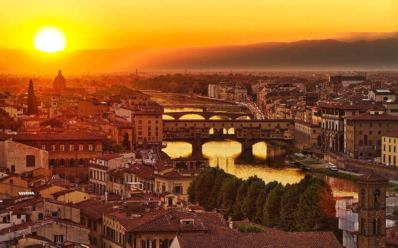Ở nơi tuyệt đẹp này, bạn sẽ thấy đường chân trời Florence cùng tháp chuông Santa Croce, nhà thờ Duomo, cung điện Palazzo Vecchio và sông Arno chìm trong tia nắng cuối ngày. Một nơi tuyệt vời khác mà bạn có thể chiêm ngưỡng hoàng hôn là cây cầu Ponte Vecchio – cây cầu vòm bằng đá thời trung cổ - 1 trong số 6 cây cầu lâu đời nhất của Florence bắc qua sông Arno. Đừng bỏ lỡ dịp may hiếm có này, bạn nhé!