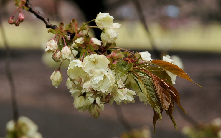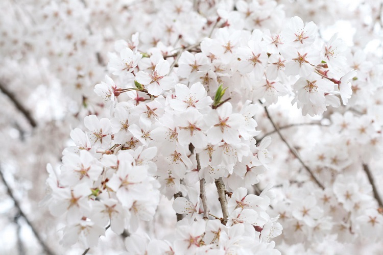 Màu trắng là biểu tượng của sự tinh khiết, ngây thơ và trong sáng. Mặc dù hoa anh đào sakura trắng không thu hút nhiều sự chú ý như hoa màu hồng, chúng vẫn khiến ta mê hoặc khi lặng ngắm sắc trắng mộc mạc ấy.