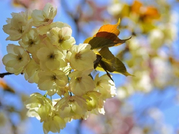 Màu vàng tượng trưng cho hạnh phúc, niềm vui và năng lượng tích cực. Màu vàng cũng là biểu tượng của tình bạn và sự gắn kết gia đình. Do vậy mà cơ hội chiêm ngưỡng hoa anh đào sakura với sắc vàng nhạt điểm phớt chắc chắn là dịp may hiếm có để cầu chúc năm mới cho những người thân yêu.