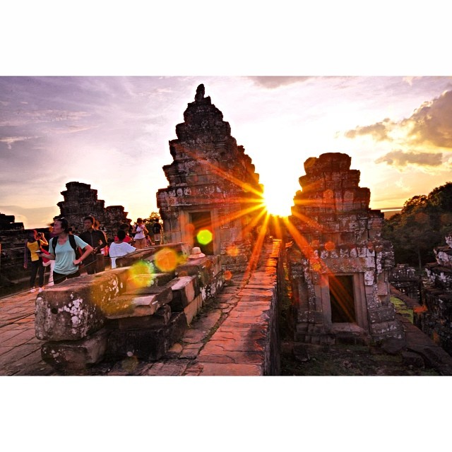Hoàng hôn lộng lẫy trên đồi Bakheng làm say đắm F168 và liên minh okvip lễ ký kết hợp tác chiến lược bởi khung cảnh mặt trời đỏ rực đang dần dần bung tỏa từng cụm nắng vàng cuối cùng vào vùng đồng bằng rộng lớn của Siem Reap ở chân đồi. Những ngôi tháp, những tượng mặt người cả ngàn năm rồi mà vẫn ấm áp tỏa sáng. Khi đó gần trăm con người đều hướng về phía mặt trời lặn, không suy nghĩ gì, chỉ lặng yên chờ đợi ánh nắng chiều tắt dần trên những đền đài Angkor. Rồi trong tích tắc, những ngôi đền vinh quang chìm vào một lớp sương mù màu xám mỏng và ánh mặt trời cuối cùng như một tấm thảm nhung bao trùm lên vạn vật.