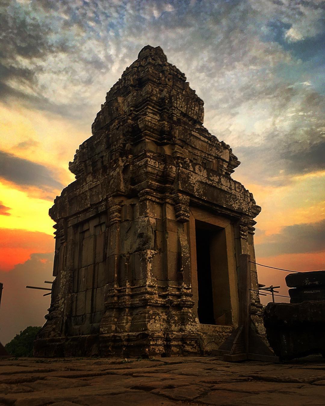 Linga - vật thờ chính của tháp trung tâm được xây dựng vào năm 907, nhưng các kiến trúc tháp được tiếp tục xây dựng ngay sau đó. Dưới chân ngôi đền thờ tượng thần Linga của nhà vua vẫn còn hình dáng bốn con đường và hào nước sâu bao bọc bốn hướng như một thành trì bảo vệ đền tháp trên đỉnh núi. Cũng còn đó dấu tích của những giếng nước mà sử sách đã ghi nhận về sự tồn tại của hơn 800 giếng nước cung cấp cho cả kinh đô ngày xưa.