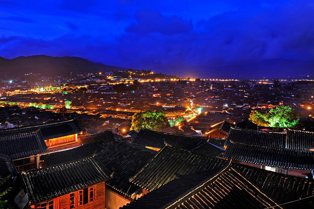 Nếu như ban ngày Lệ Giang thật thu hút với vẻ đẹp trầm lắng nơi thời gian lắng đọng dưới ánh Mặt Trời lung linh, thì về đêm, ta sẽ bất ngờ khi khám phá một góc nhìn rất lạ về Lệ Giang lung linh đầy sức sống với âm nhạc và tiếng nhạc cụ văng vẳng từ các quán bar. Khi hoàng hôn buông xuống là lúc Lệ Giang thật huyền ảo trong ánh đèn. Đường phố đông người hơn, tiếng nói cười làm không gian sống động hơn, dòng người tấp nập đổ về khiến Lệ Giang trong thoáng chốc như bắt nhịp kịp với hiện đại. Để rồi khi đêm tàn lại trở về vẻ bình dị hoài cổ về một thời xa xưa.